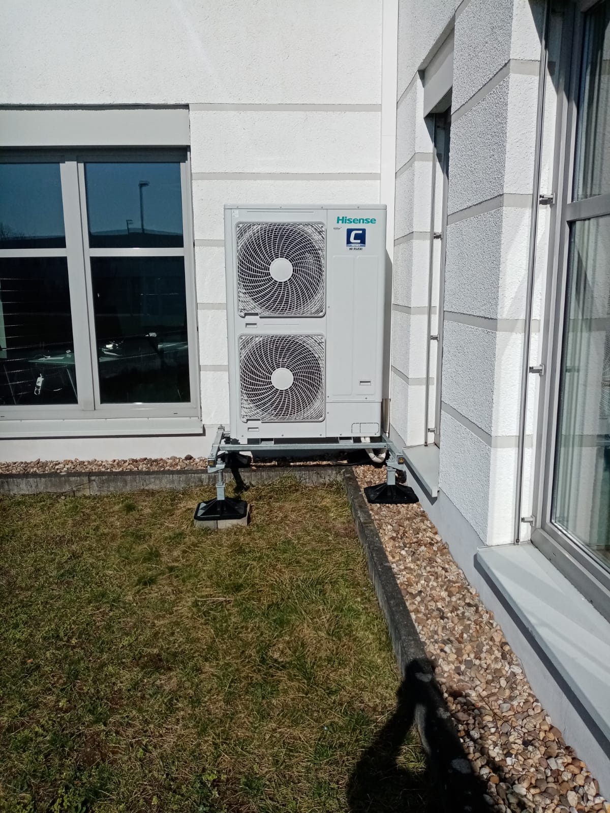 In einem Gewerbegebäude: Eine Wärmepumpe kann in einem Gewerbegebäude in einem speziellen Technikraum oder auf dem Dach installiert werden, je nach den spezifischen Anforderungen des Gebäudes.